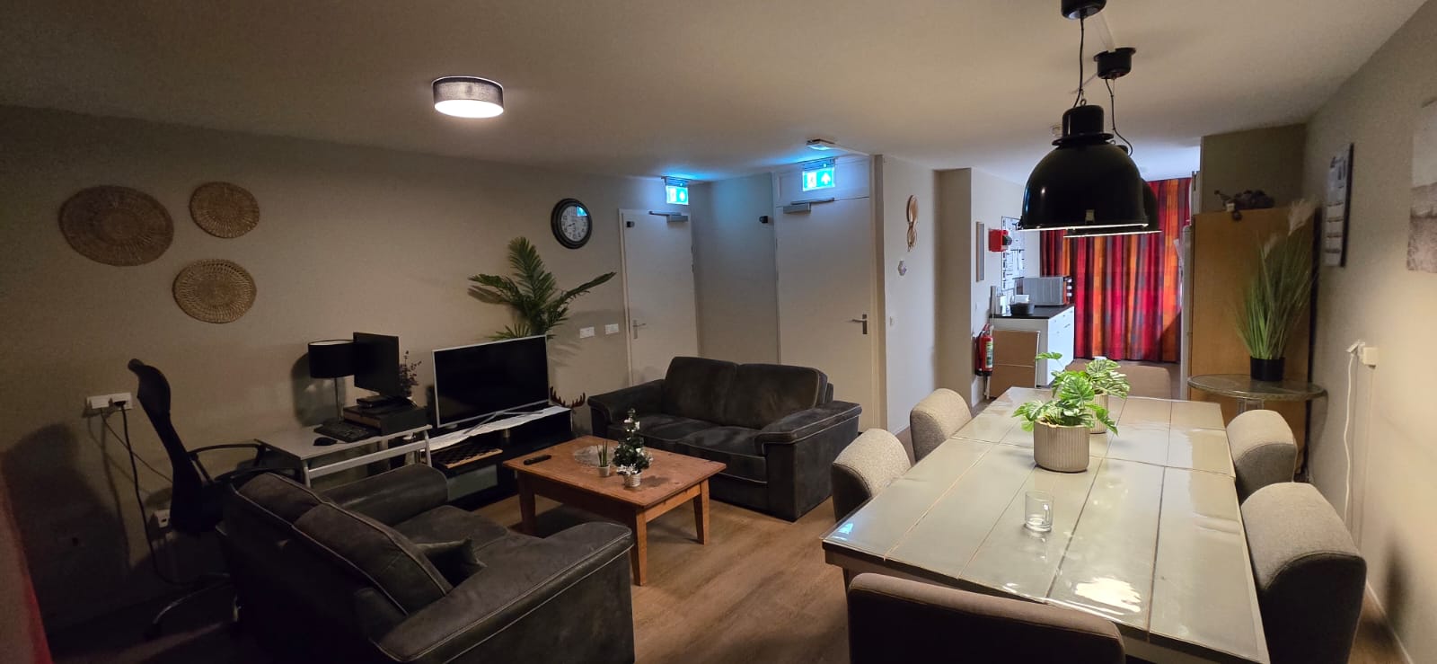 een gezamenlijke woonkamer en keuken