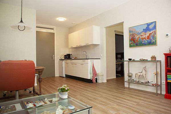 Via de woonkamer heeft u toegang tot een privéterras met een eigen tuindeur en een prachtig uitzicht op het bos. De ruime opzet maakt het appartement ook zeer geschikt voor echtparen.
