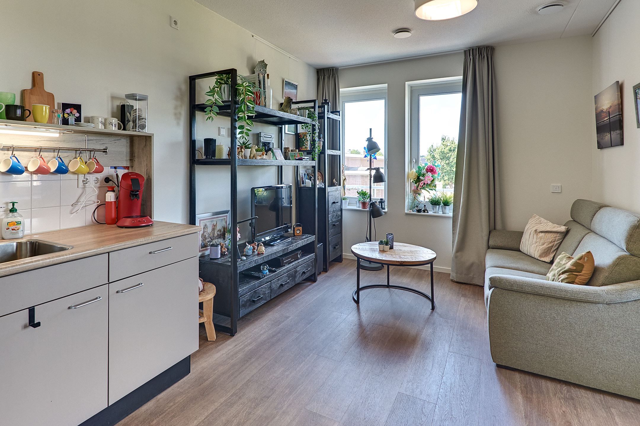 Op de Noordzijde zijn 40 één-kamerappartementen verdeeld over 3 verdiepingen. Iedere verdieping heeft een eigen gedeelde inloop en keuken. De leefsfeer kenmerkt zich door gezamenlijkheid. Omdat je in een groep woont, maken we afspraken over hoe we samen leven en wonen, en hoe we met elkaar omgaan. Je bent betrokken bij de andere bewoners, doet mee aan gezamenlijke activiteiten en kunt ook samen eten. Natuurlijk kun je je altijd terugtrekken op je eigen kamer als je dat wilt.