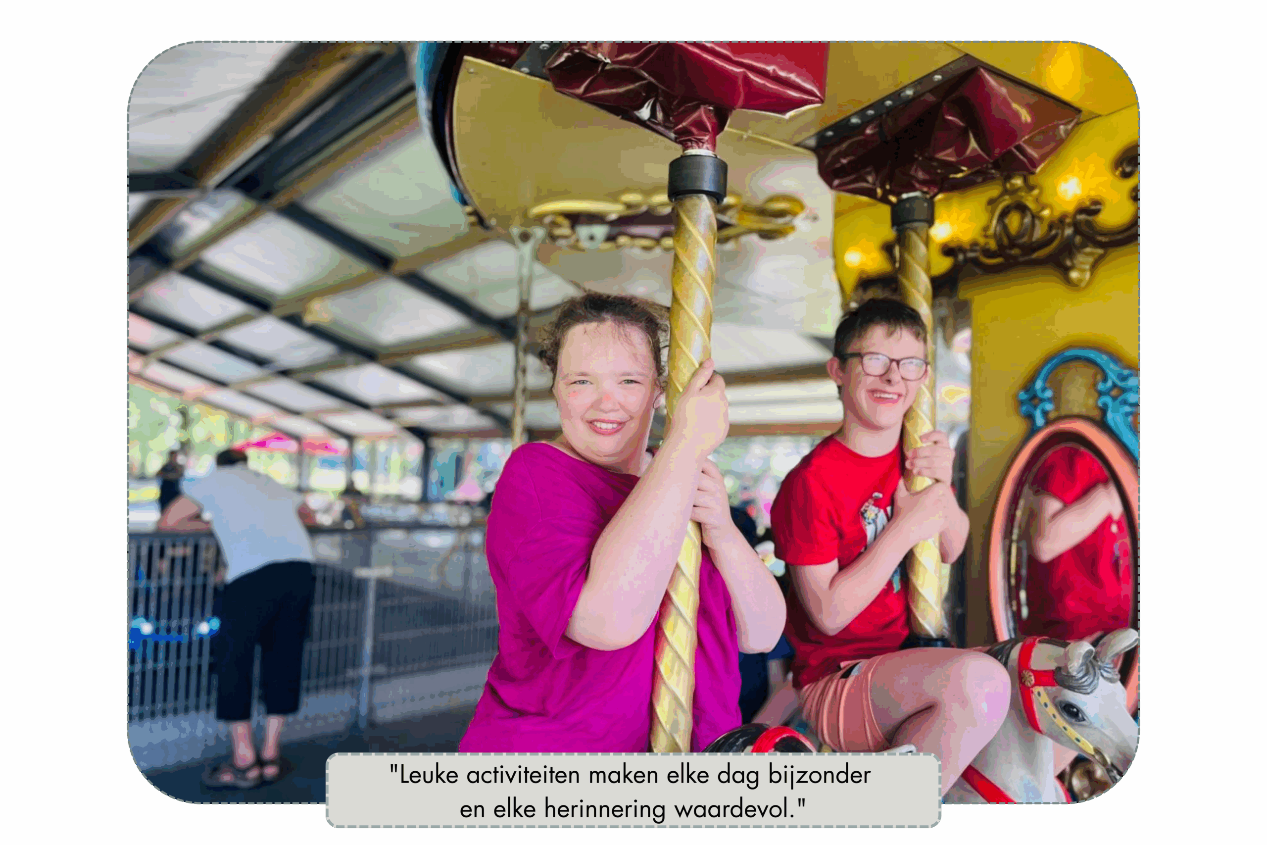 "Hele fijne, warme en gezellige plek voor onze zoon. Het logeren is voor hem iedere keer weer een feest en we zien dat het voor hem steeds gemakkelijker wordt om zich ook op een andere plek fijn en vertrouwd te voelen. Een topteam dat naast zorgzaam ook heel flexibel is, met de ouders meedenkt en ons gerust weet te stellen zodat het makkelijker wordt om ‘los’ te laten en even een keertje niet te hoeven ‘zorgen’. Dankjewel toppers."
